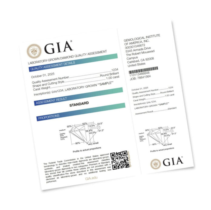 Por lo tanto, la Evaluación de Calidad de Diamantes Creados en Laboratorio del GIA utilizará términos descriptivos en lugar de la nomenclatura desarrollada por GIA para los diamantes naturales. Los diamantes creados en laboratorio se describirán como ‘Premium’ o ‘Standard’, en función de una evaluación global de su pureza, color y talla. Cualquier diamante que no cumpla con todos los criterios mínimos de ‘Standard’ no recibirá una evaluación del GIA.