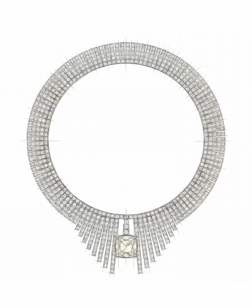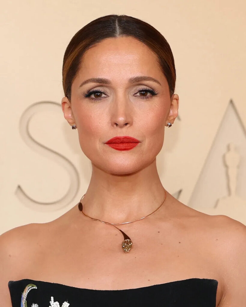 El collar tipo torque de Rose Byrne tampoco pasó desapercibido, incluso se ha hecho viral en redes sociales al tratarse de una pieza con diamante champán en forma de pera, colgando de un collar asimétrico diseñado por Taffin de James De Givenchy. Diseñado para la ocasión, lo especial de este collar es su diamante del desierto.