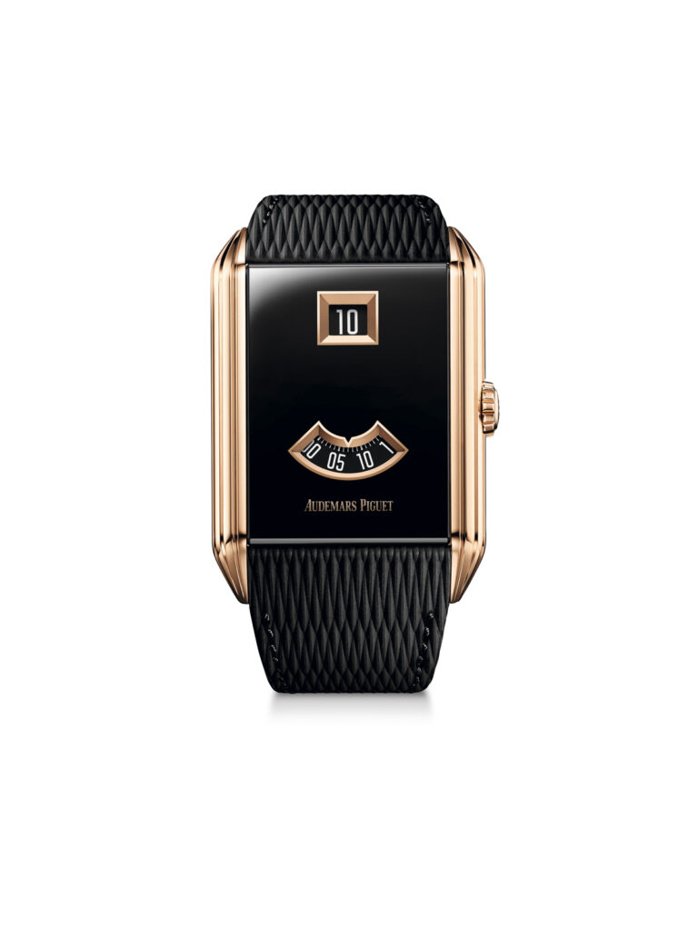 Inspirado en el movimiento estilístico denominado Streamline, este reloj rectangular con gallones verticales aparece en primicia en el primer movimiento automático con horas saltantes de la Manufactura, el Calibre 7122. Con una combinación de maestría relojera y estética vintage, esta referencia presenta una construcción totalmente inédita, con una característica caja de oro rosa y zafiro y una correa con un motivo de nuevo desarrollo, que refleja el espíritu de innovación y creatividad que define a Audemars Piguet desde su fundación.