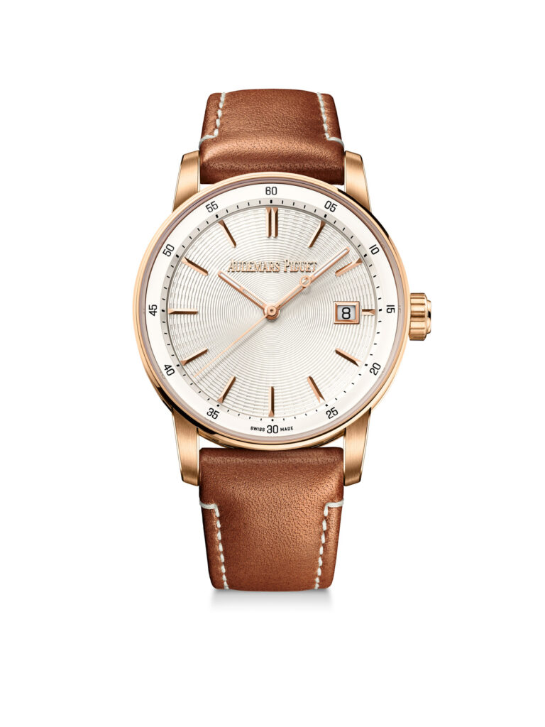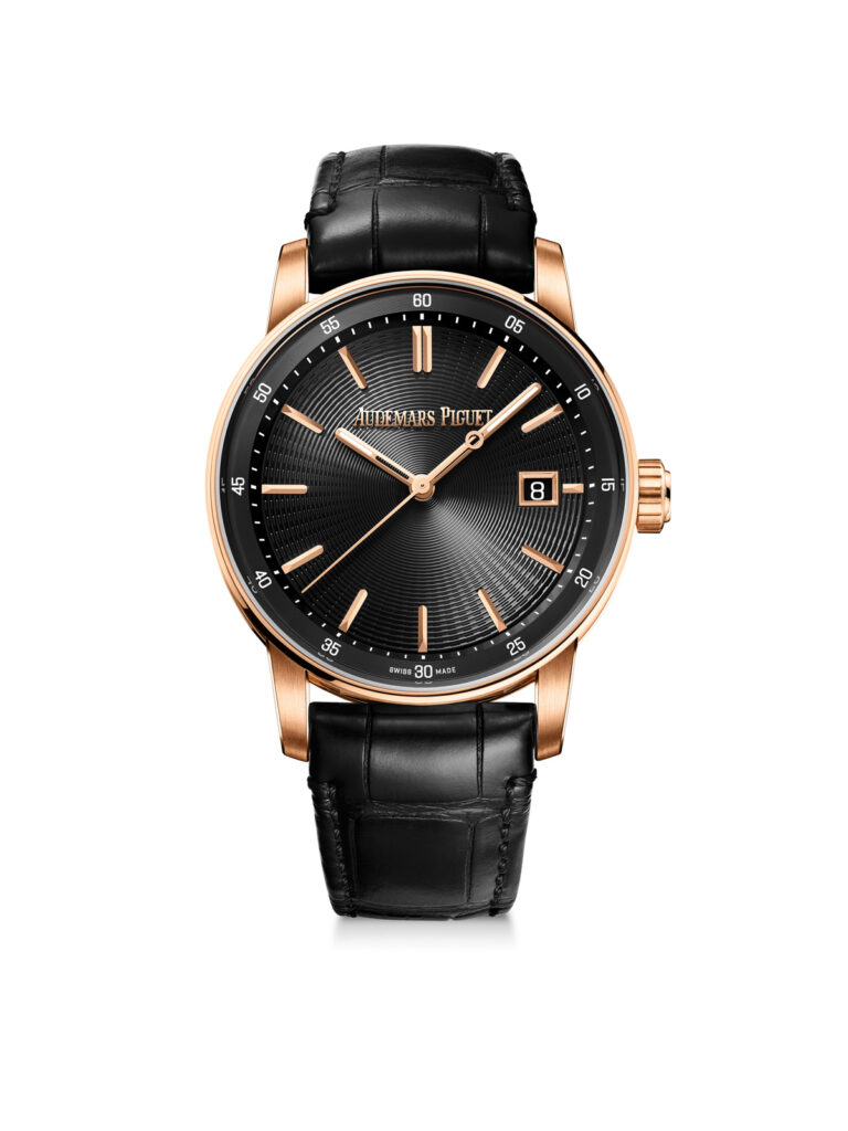 Audemars Piguet presenta en Watches and Wonders dos nuevas variantes del modelo Code 11.59 by Audemars Piguet Automático de 38 mm (lanzado en 2023), ambas en oro rosa de 18 kilates. Con un contraste estético que resulta tan elegante como cálido, los nuevos modelos presentan tanto tonos oscuros e intensos como matices claros y luminosos de atractivo atemporal y fluido. La primera Referencia incorpora una esfera negra con una correa de piel de aligátor, mientras que la segunda propone una esfera plateada con una nueva correa de piel de becerro marrón con pespuntes blancos. Ambas esferas lucen el motivo característico de la colección: los círculos concéntricos similares a las ondas sobre la superficie del agua, junto con finas ranuras que capturan la luz. Sobre este fondo destacan los índices y las agujas luminiscentes de oro rosa de 18 kilates, una elección que potencia la legibilidad, el confort y la modernidad de estos diseños de múltiples facetas.