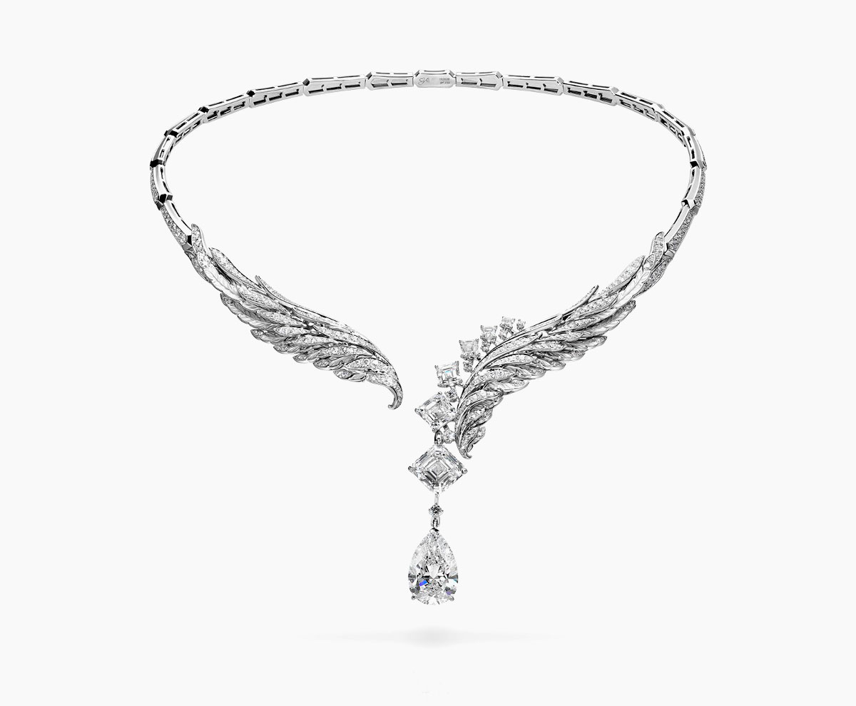 Collar Mosaico. El collar Mosaico, fabricado en oro blanco de 18 quilates, pertenece a la colección de Alta Joyería de Carrera y Carrera y cuenta con 576 diamantes.